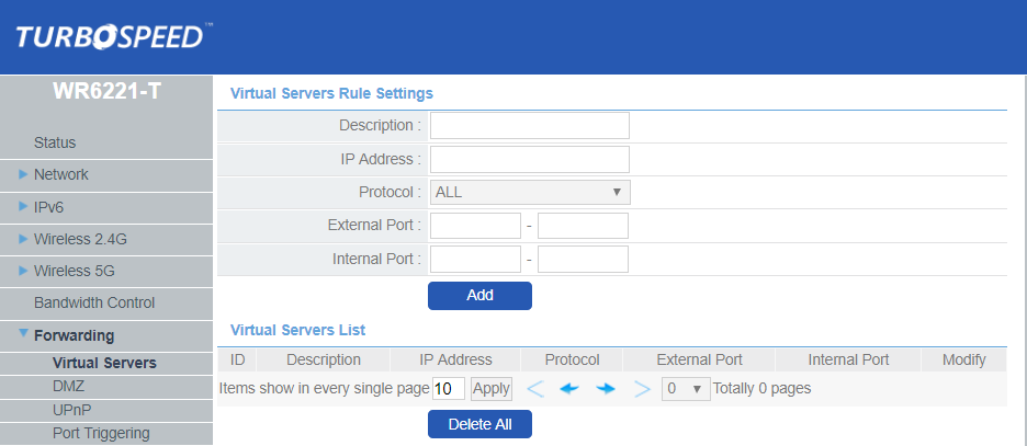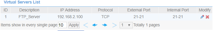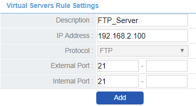 Then go to Forwarding -> Virtual Servers to enter the virtual server rule setting.