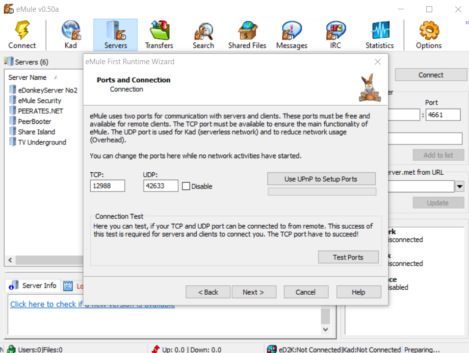 The eMule will guide you to open the port 12988/TCP and 42633/UDP for better connection.